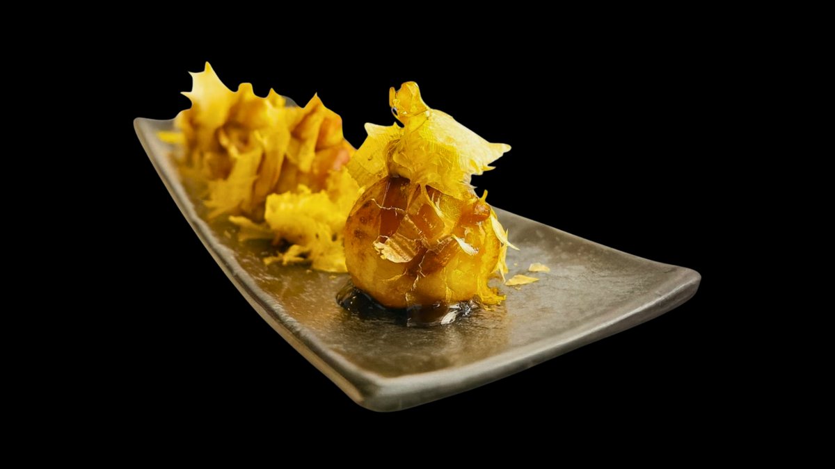 Crispy salmon skin, salmon tempura, cucumber, sesame and crispy onion