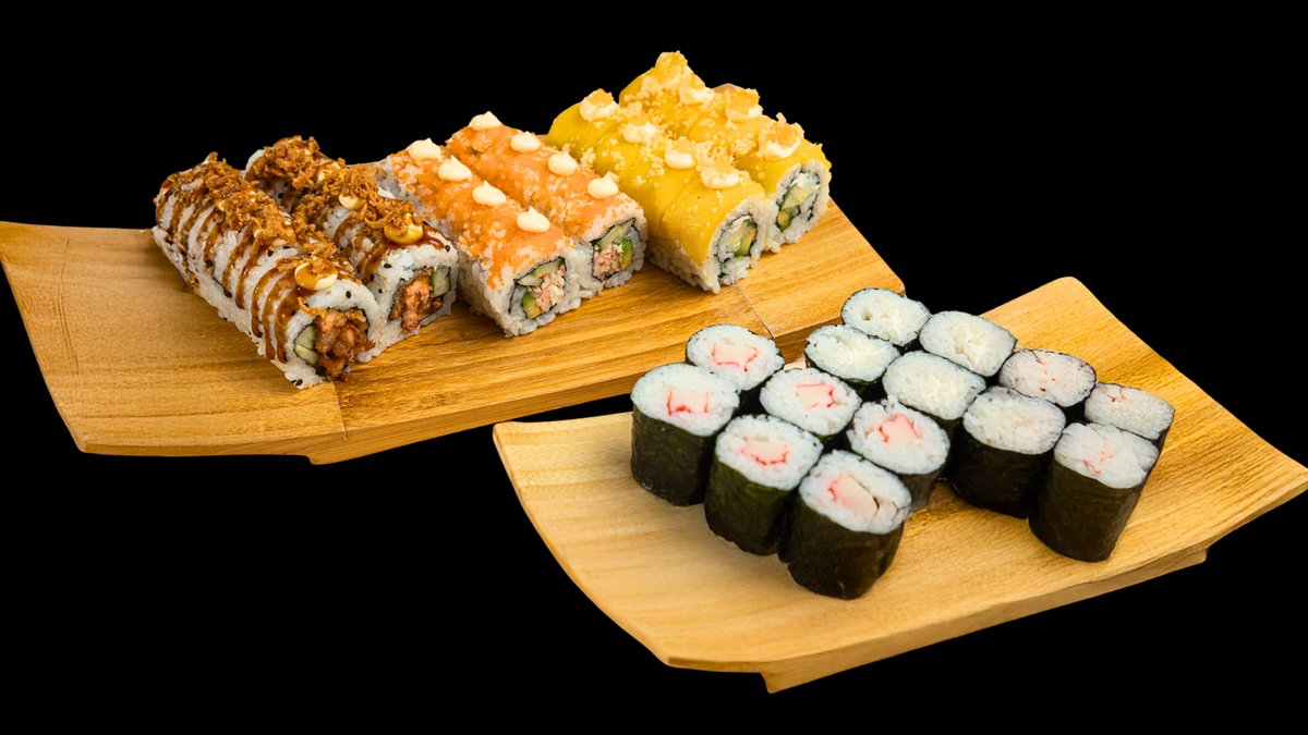 8Pcs California Roll 8Pcs Creamy Mango Roll 8 Pcs Crispy Salmon Skin Roll 6 Pcs Crab Hosomaki 6 PCs Cream Cheese Hosomaki
