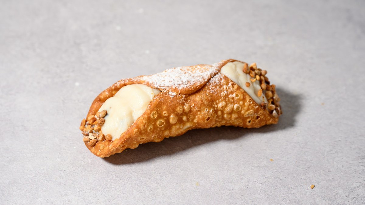 Crispy cannoli shells filled with creamy ricotta cheese, offering a traditional Italian treat
