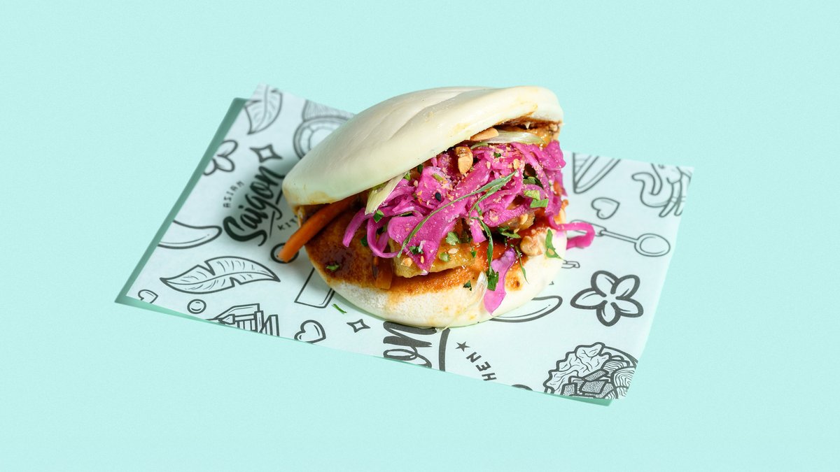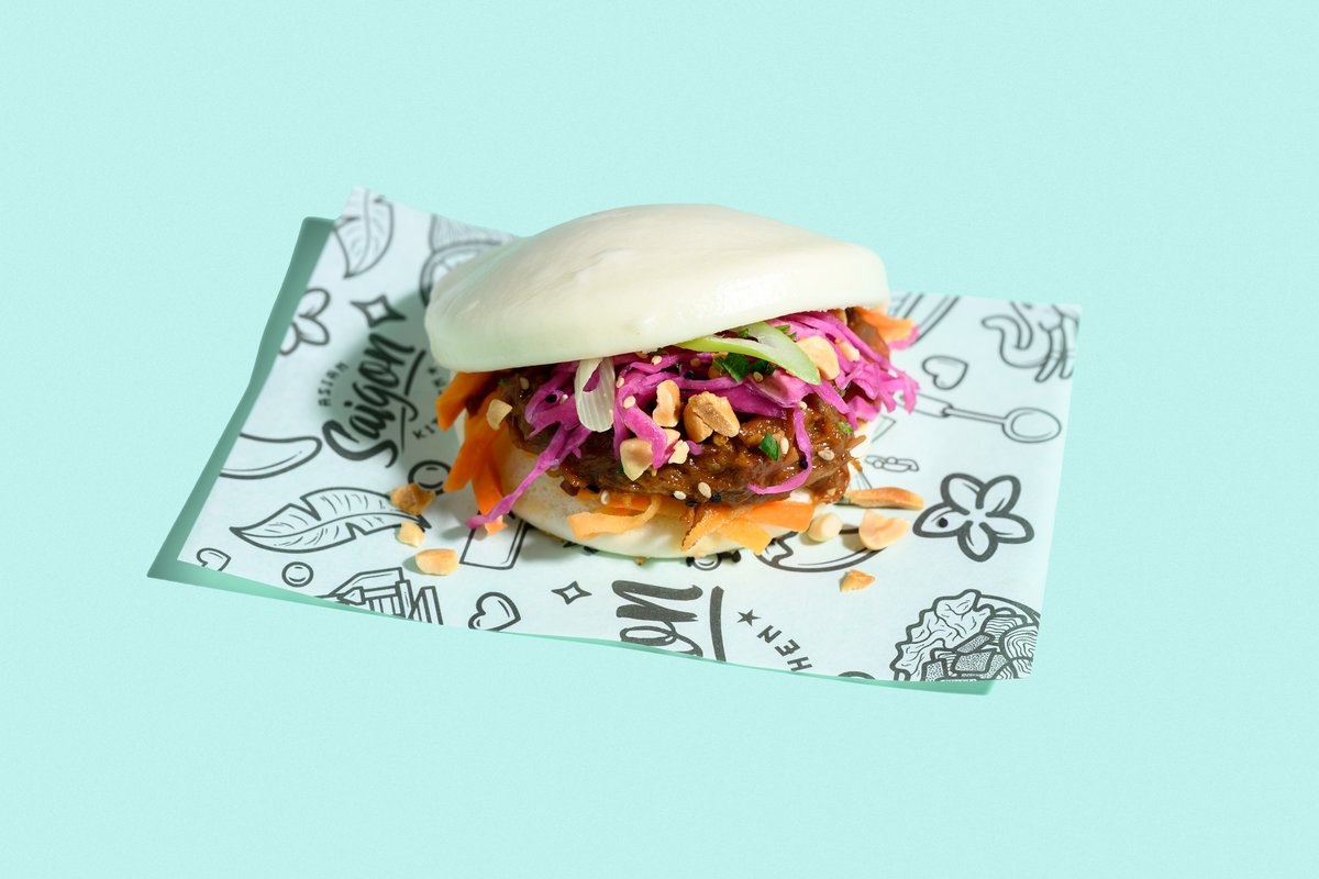 Signature saigon korean fried chicken cushioned in a fluffy bao bun, topped with crushed peanuts pickled carrots, pickled cabbage and spring onion *Please note that bao buns cool down quickly once packed for delivery (even more so in winter months!). You may enjoy them at the delivered temperature, or simply reheat them in the closed take-away container for 30 seconds in the microwave.