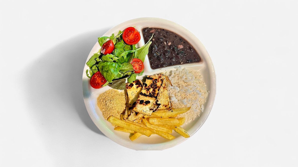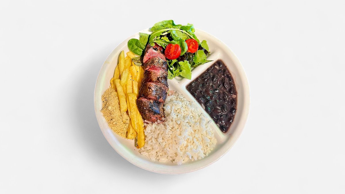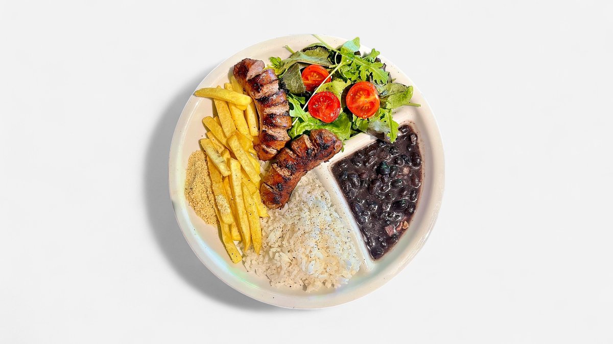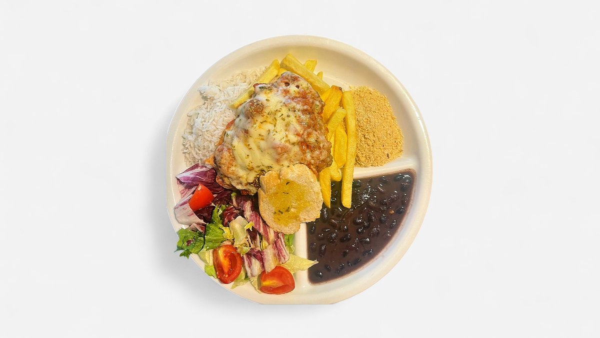 a popular, budget-friendly, and convenient meal option in Brazil. It typically consists of a combination of rice, beans, a protein (like chicken, beef, or fish), and a salad, served on a single plate. It's a staple in many Brazilian restaurants,