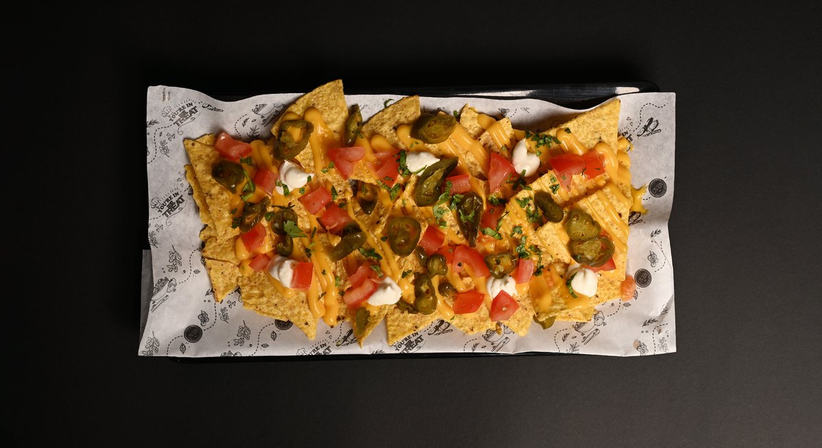 Crispy chicken, pepperoni, jalapeno, nacho cheese, sour cream, lettuce and fresh cilantro