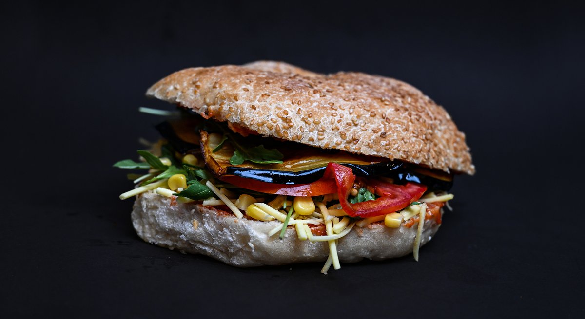 Homemade sauce, vegan cheese, sweet corn, tomatoes, rucola and aubergines