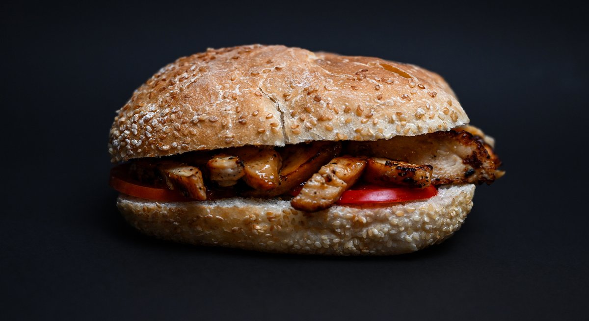 Chicken, bacon, lettuce, grana shavings, tomatoes and caesar dressing