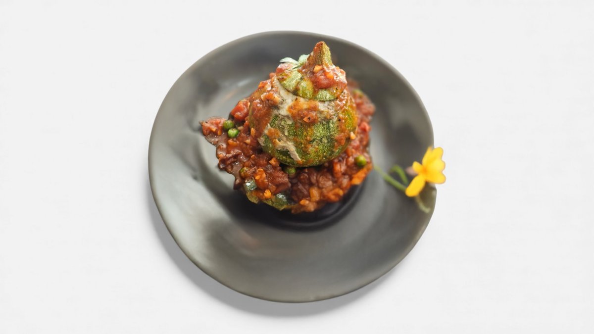 Grilled chicken breast, pulled beef brisket, grilled veggies, raw onions, couscous and our own hot sauce