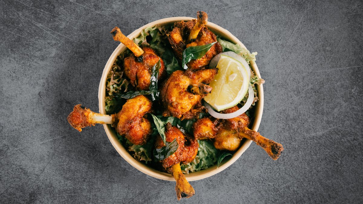 Filled with chicken 65, slaw, kachumber mango salsa and mint yogurt chutney