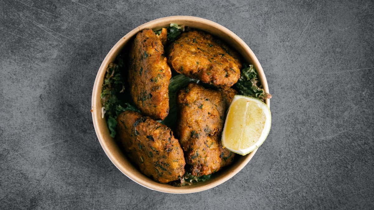 Fish patties mixed with potatoes, chana dal, garlic and ginger, fresh mint and lemon zest.