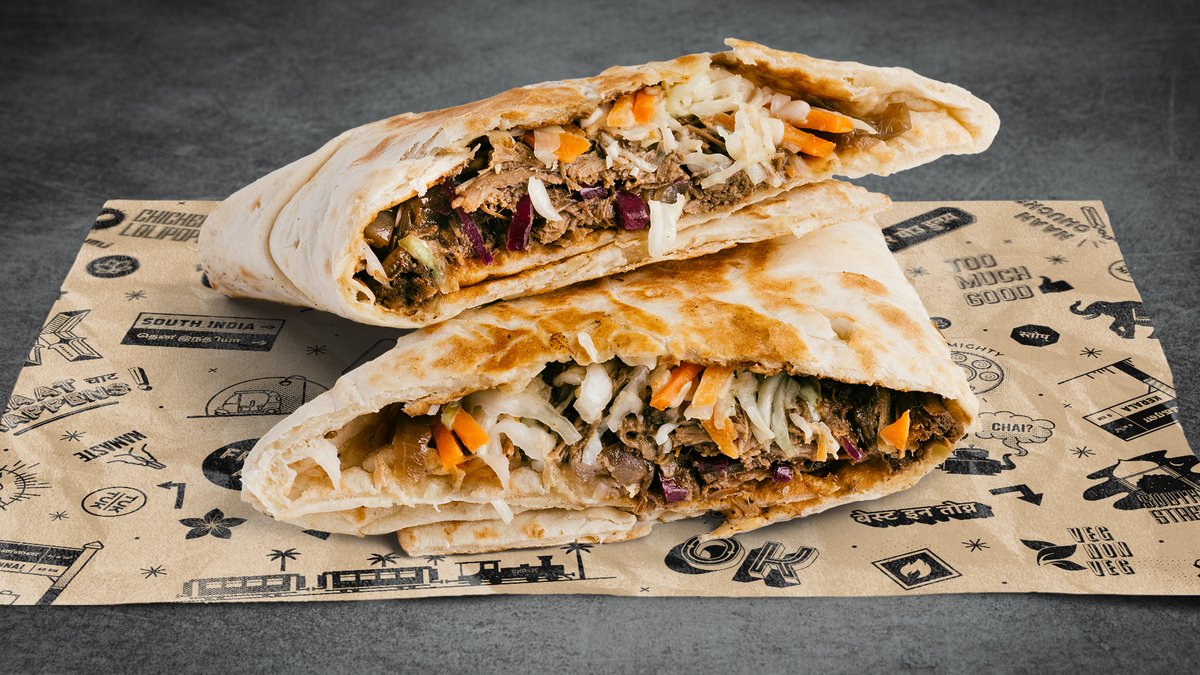 Pulled brisket, crunchy slaw, pickled red onions and in-house vibrant Indian barbecue sauce, all in a freshly baked naan bread.