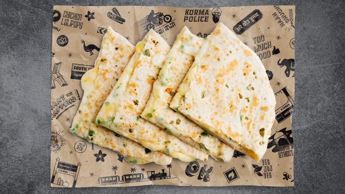 Pork belly, sautéed onions, tomatoes, cheese, green chili, and achari mayo, all in a freshly baked naan bread