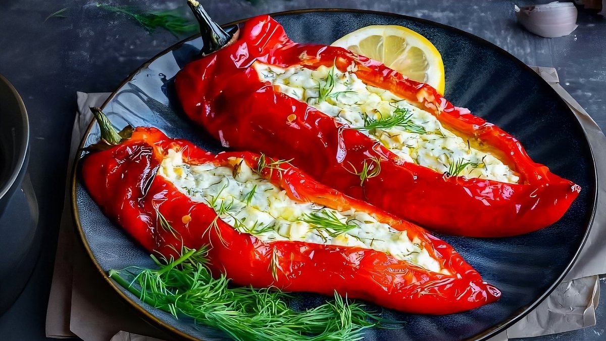 Sweet bell peppers grilled and stuffed with creamy feta cheese, drizzled with olive oil and herbs. A warm, melty Greek favorite! 🔥🧀