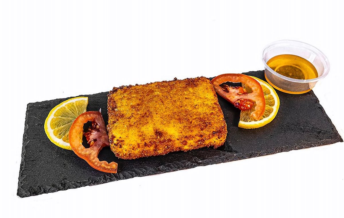 Crispy on the outside, melty on the inside! Pan-fried feta cheese served golden and warm, topped with honey. A cheesy Greek classic you’ll love! 😋✨