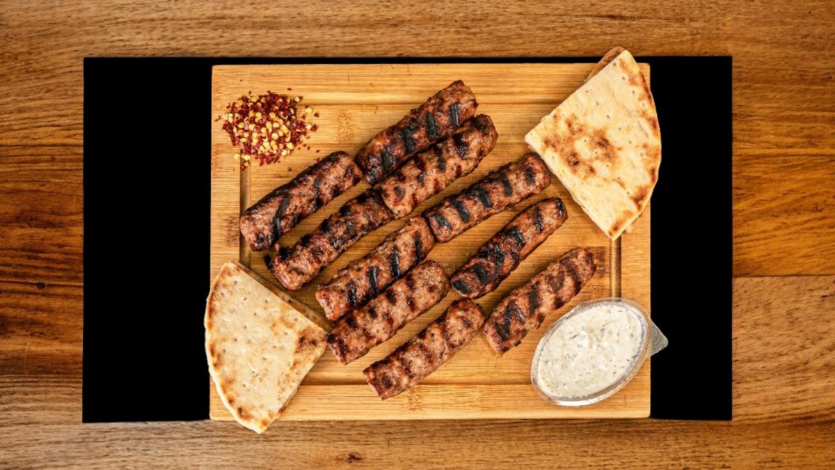 Traditional Greek sausage grilled to perfection, full of rich Mediterranean flavor. Choose your topping 😋