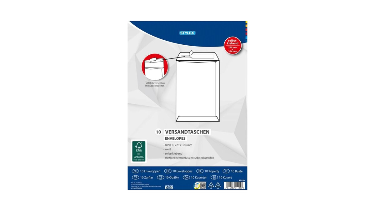 A4 Stylex White Envelope, X 10