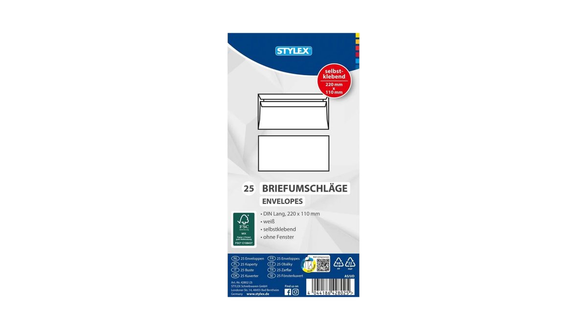 Dl Stylex White Envelope, X 25
