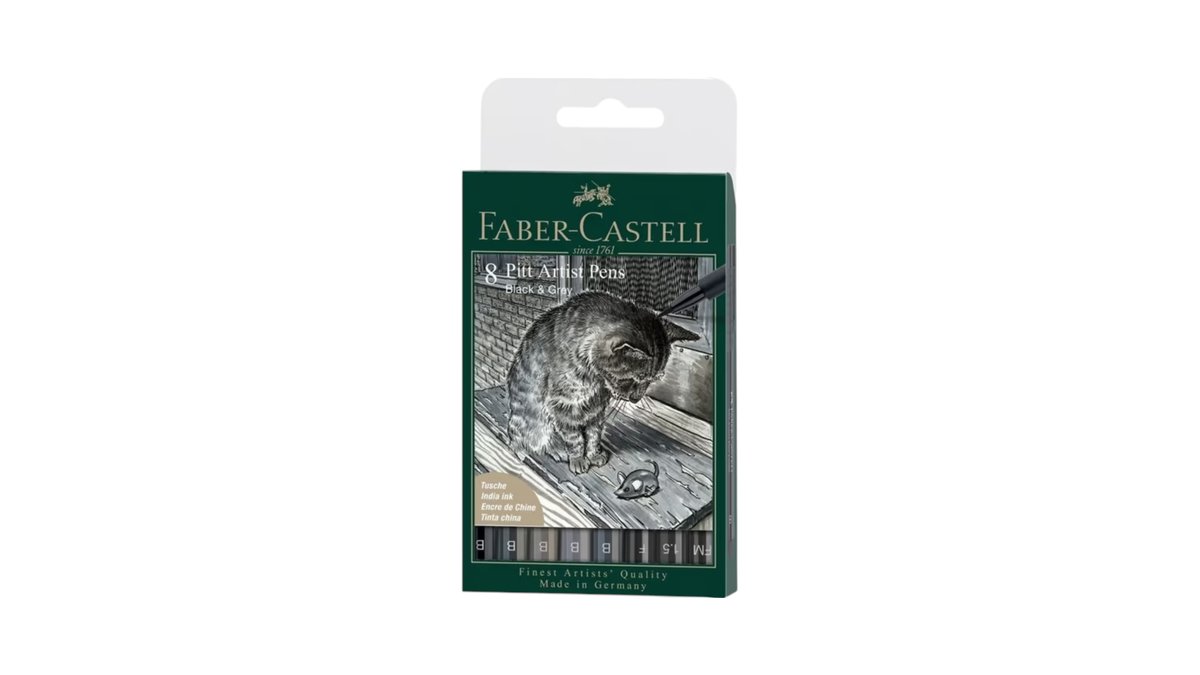 Faber-Castell Pitt Artist Pen India Ink Pen Wallet Of 8pcs - Black