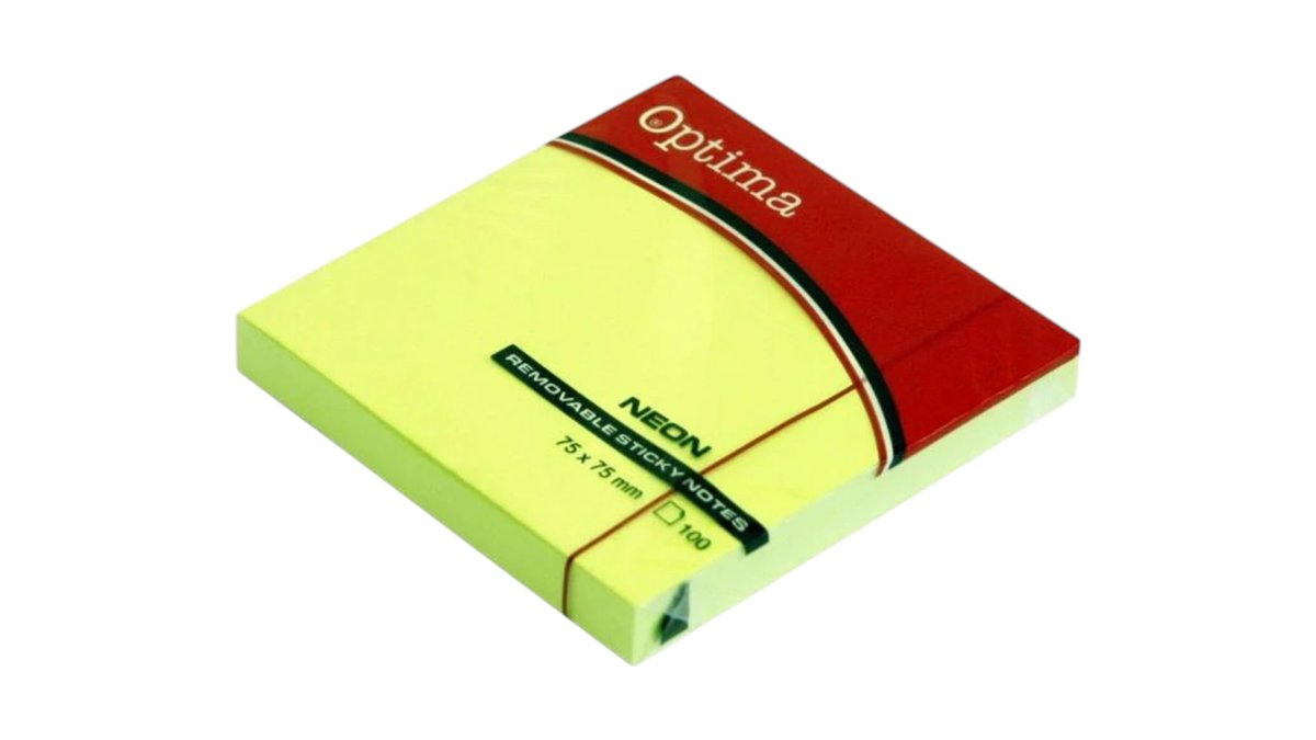 Optima Sticky Notes 7.5 x 7.5 A Pack Of 100pcs - Neon Green