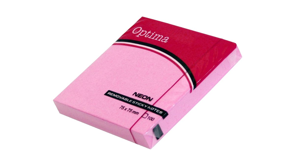 Optima Sticky Notes 7.5 x 7.5mm A Pack Of 100pcs - Neon Pink
