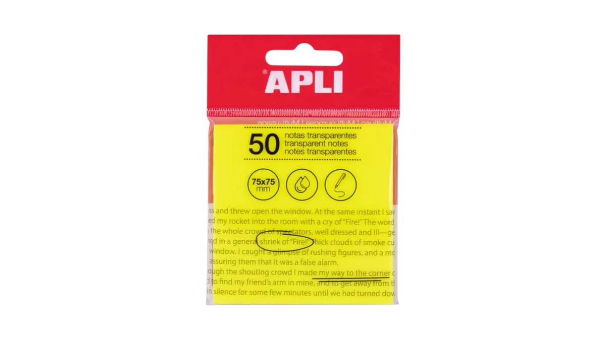 Apli Transparent Sticky Notes 75 x 75mm A Pack Of 50 Sheets - Yellow