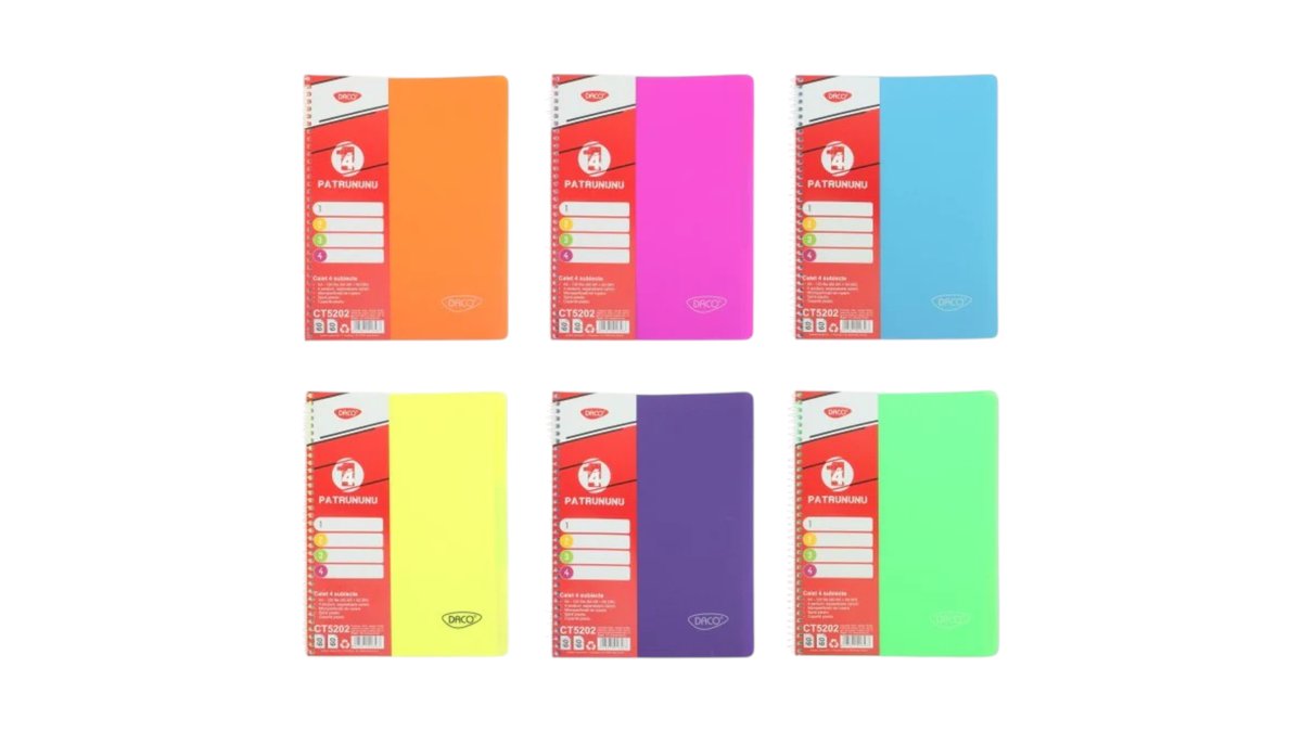 Daco A4 Notebook with 4 Dividers (120pgs) - Assorted Colours x1
