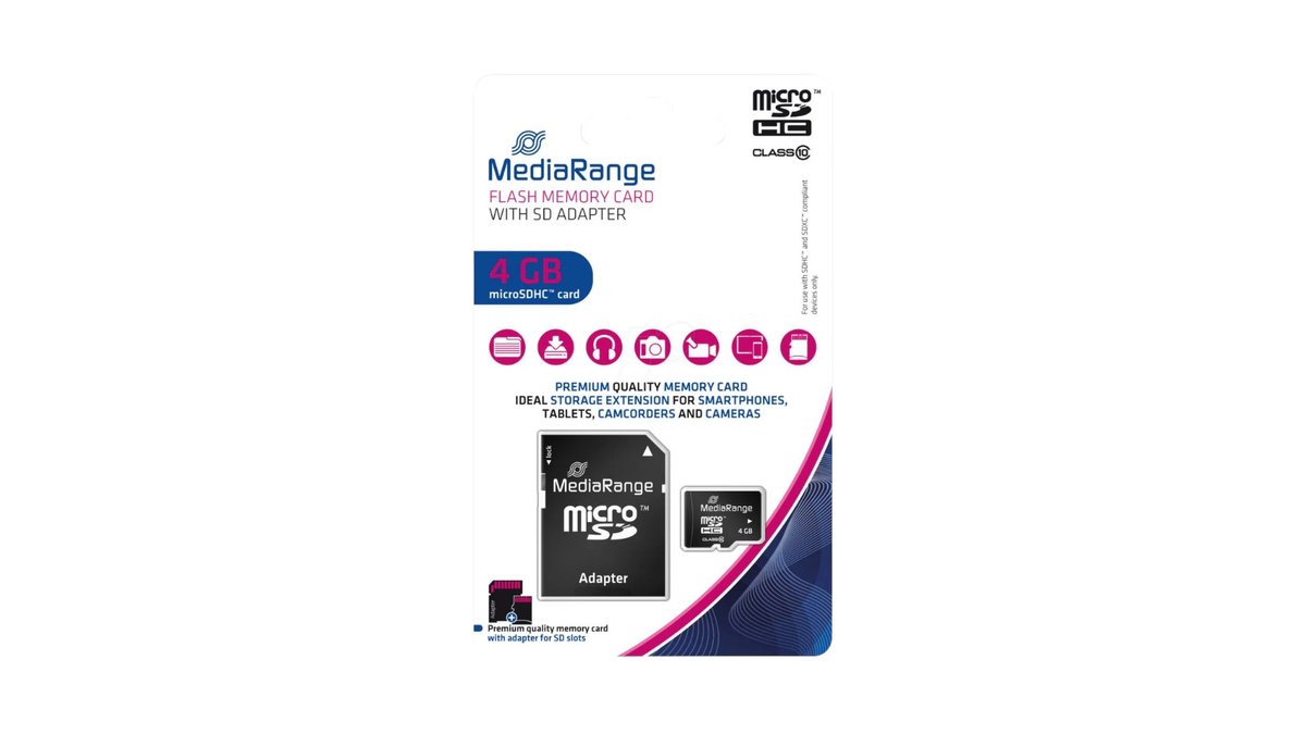 Mediarange Microsdhc Card Class 10 & Adapter, 4gb