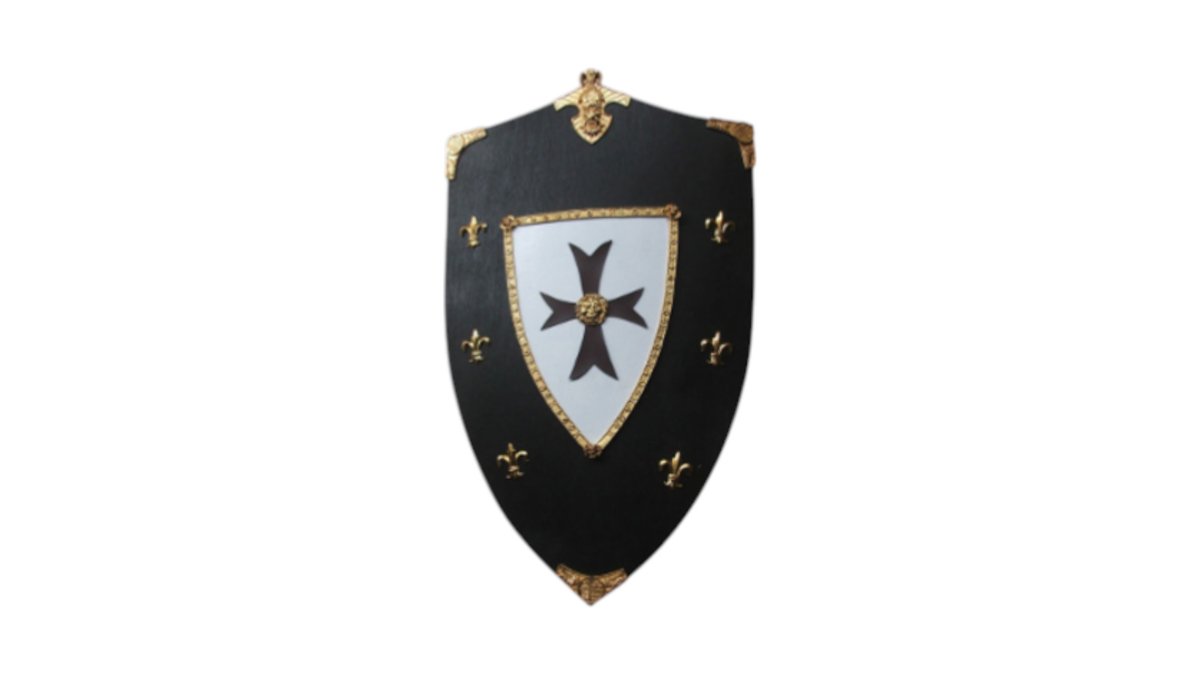 SHO259 Wood Shield Malta Cross 74cm X 48cm