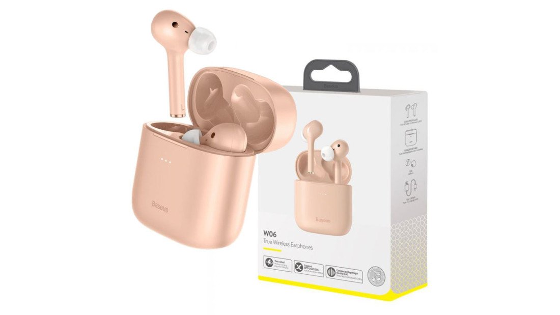 Baseus Earphone Bluetooth W06 True Wireless Headset Charging Case Pink
