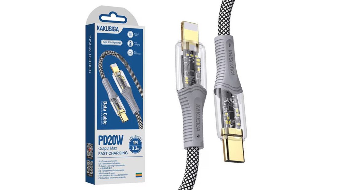 Kakusiga PD60W Type-C to Type-C Fast Charging Cable 1M Braided Transparent Shell