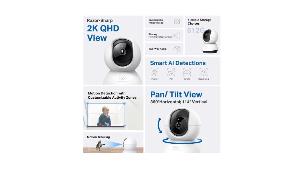 TP-Link Tapo Pan/Tilt Home Security Wi-Fi Camera 360°, 2K 4MP QHD