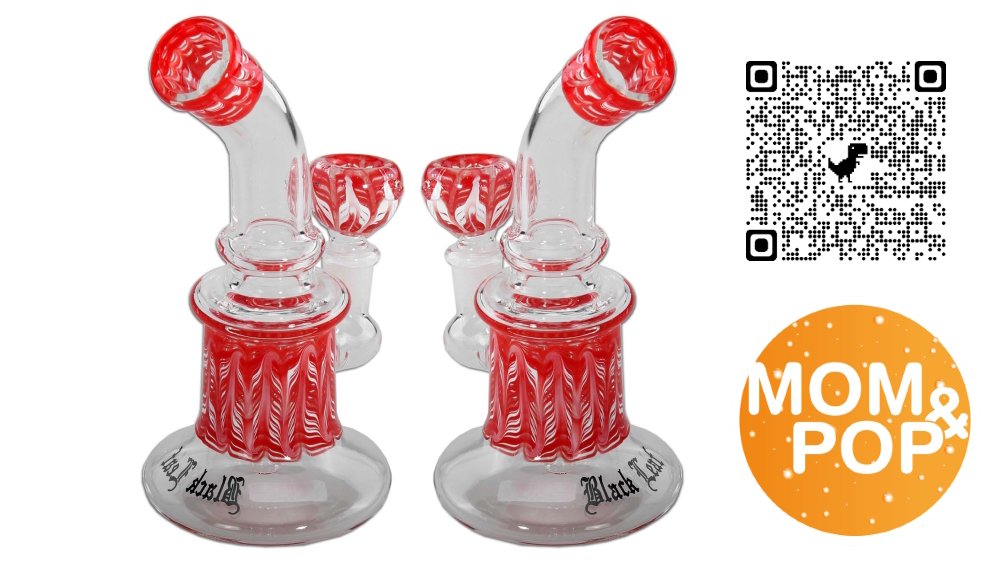 🆕 Black Leaf Glass Bubbler Red, 17cm