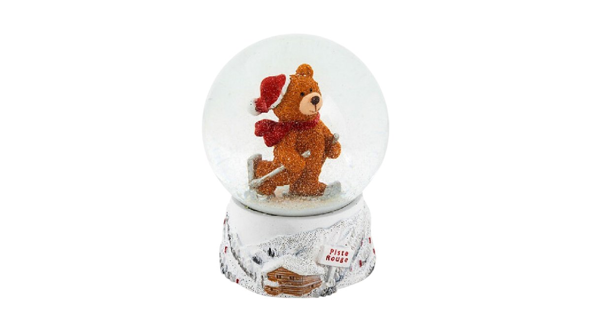 Atmosphera Snow Globe, Bear On Skis, 80mm