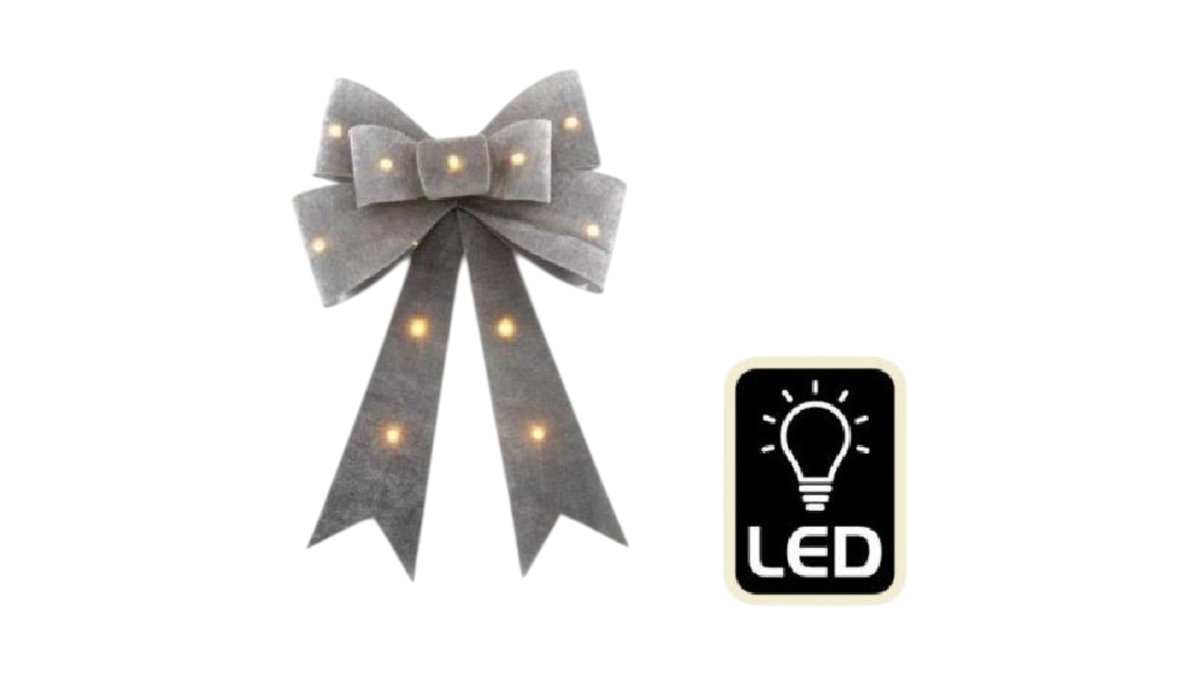 Silver Bow With LEDs, 35cm X 50cm