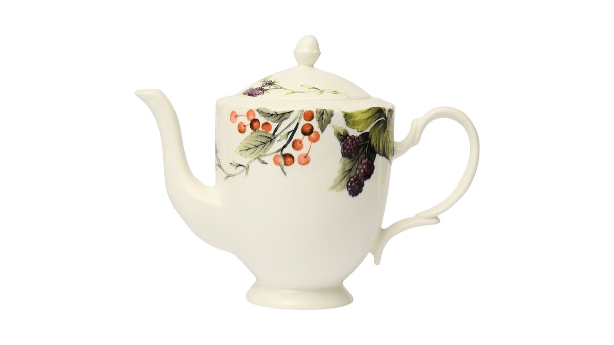 Coincasa Berry Motif Ceramic Teapot, White