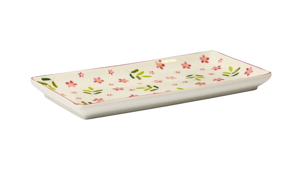 Coincasa New Bone China Tray With Rose Motif
