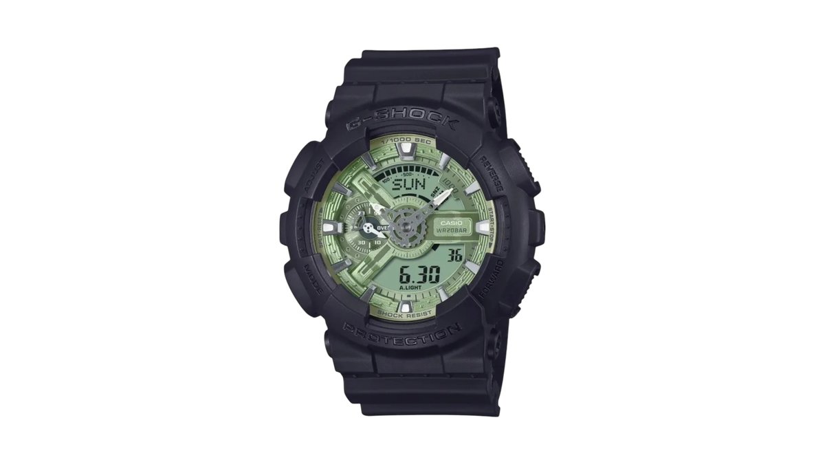 €133.00Casio G-shock GA-110CD-1A3ER 200m Shock Resistant Analog-digital Watch With Green Dial Black Resin Strap