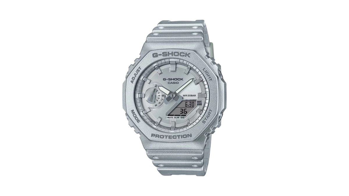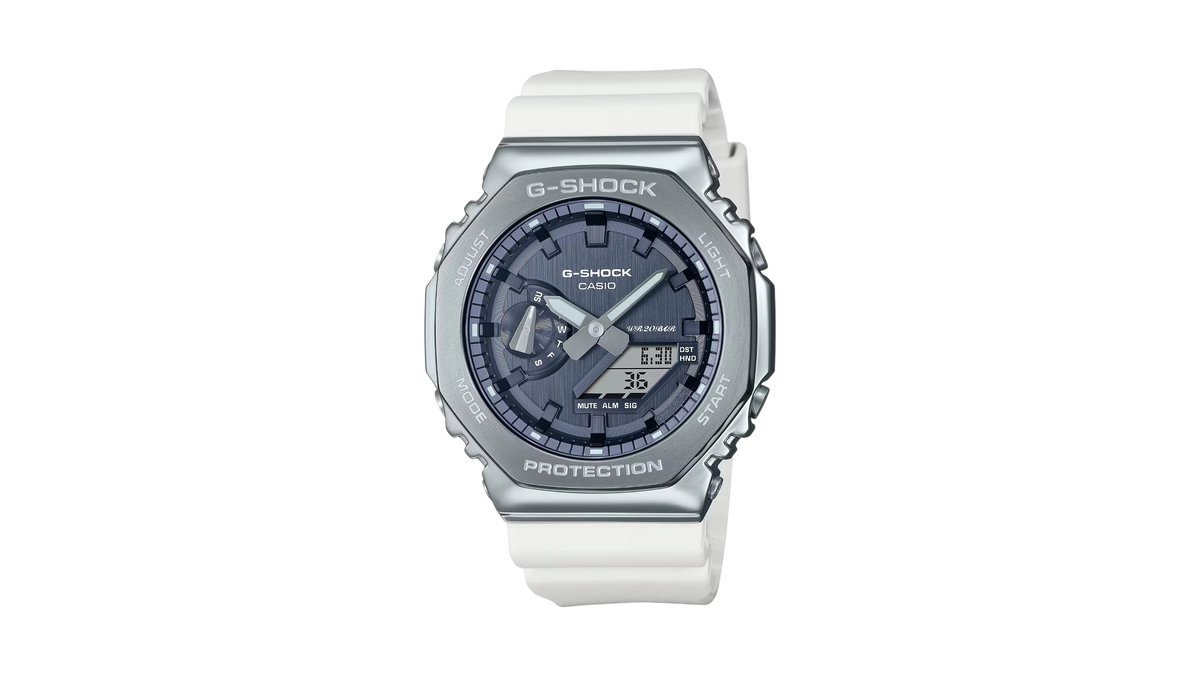 Casio G-Shock GM-2100WS-7A Silver Metal Bezel 200m Analog-digital Watch With Stainless Steel, Double Led & Hand Shift Premium White Casioak 72g
