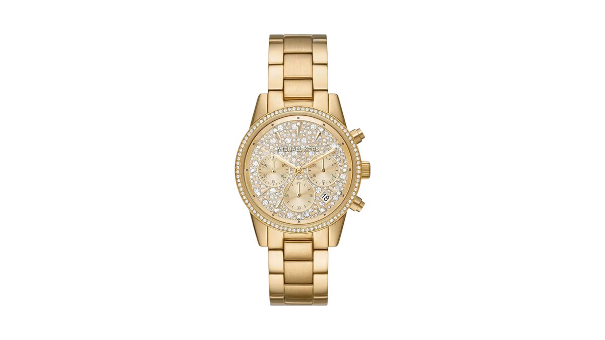 Michael Kors Ritz Chronograph Gold Dial Crystal-set Stainless Steel 37mm Ladies Watch