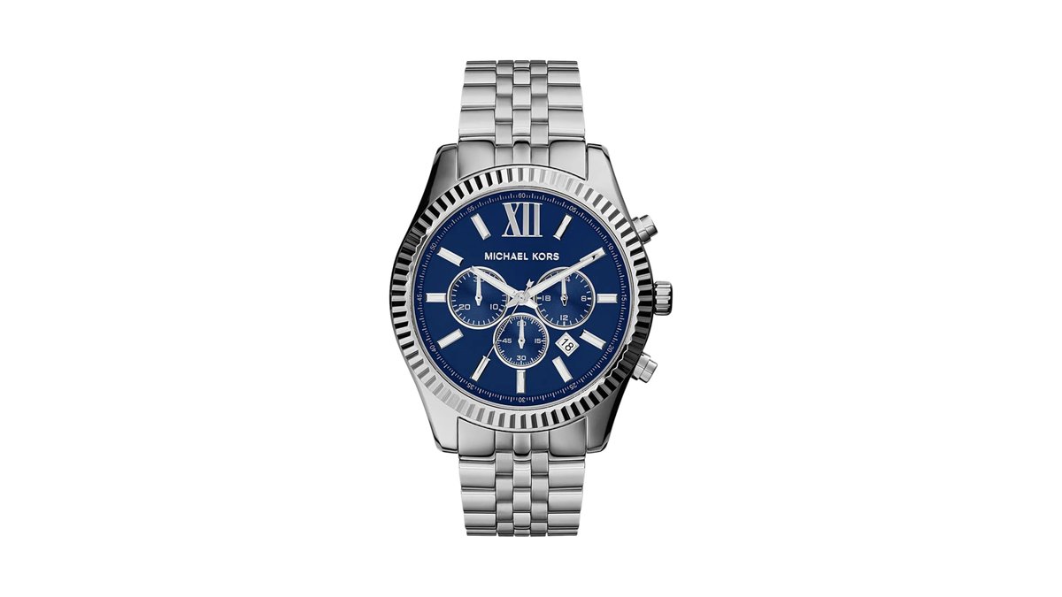 Michael Kors Lexington Blue Dial Silver Stainless Steel 45mm Chronograph Men's Watch