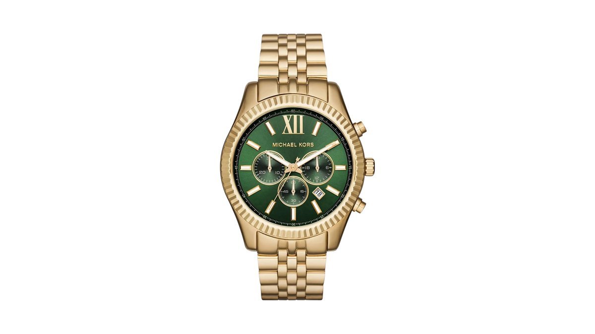 Michael Kors Lexington Green Dial Gold Stainless Steel 45mm Chronograph Men's Watch