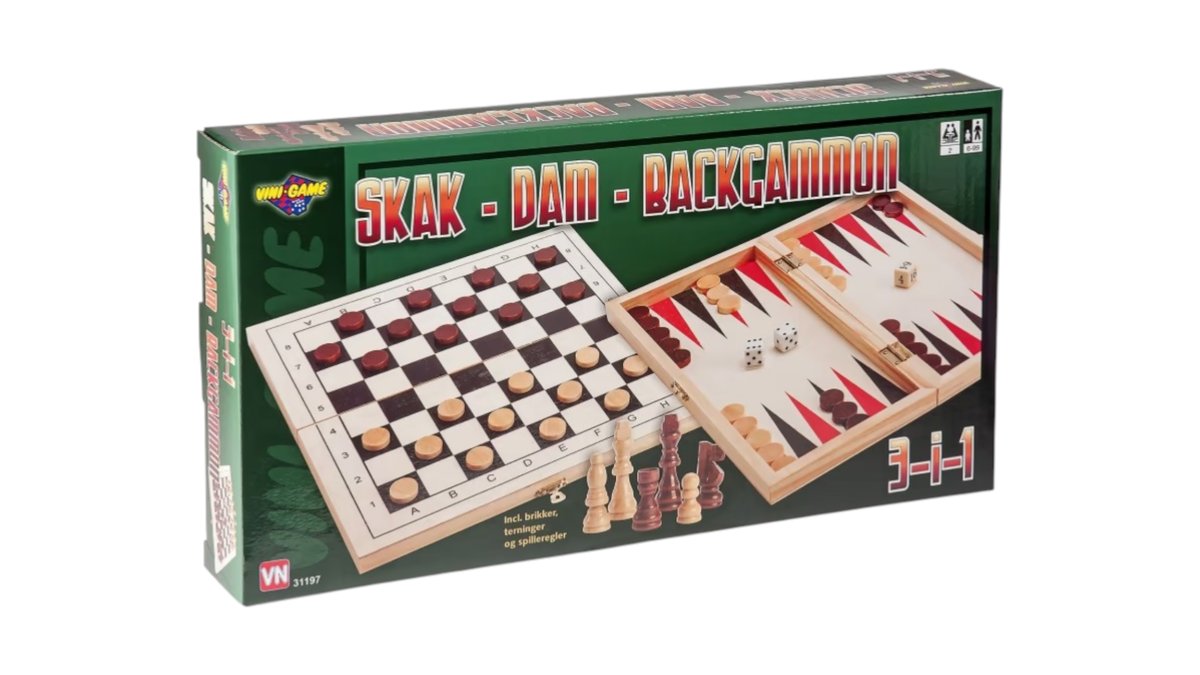 Vini Game 3 in 1 Chess Checkers & Backgammon