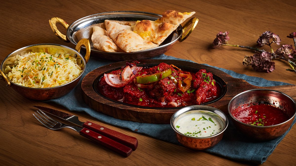 Grillet biff marinert i yoghurt, nord-indiske krydder og stekt løk. Serveres med tandoorisaus, raita, basmatiris og steinovnsbakt brød med smør.