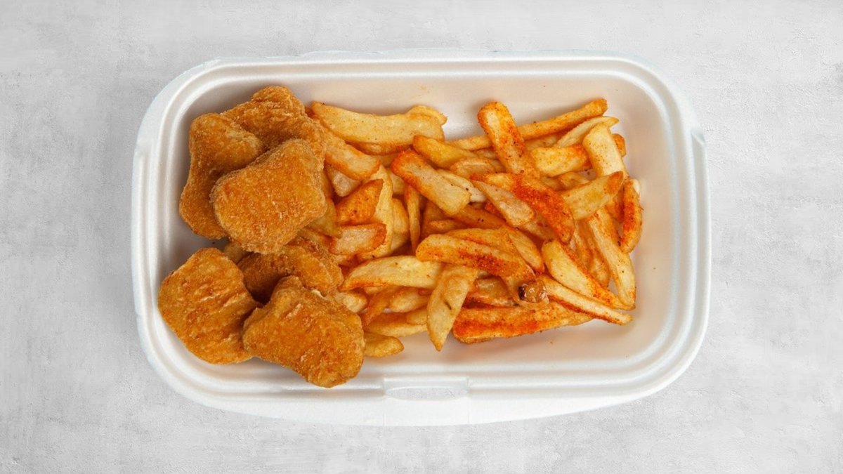 Chicken nuggets med pommes frites. Merk: referansebilde.