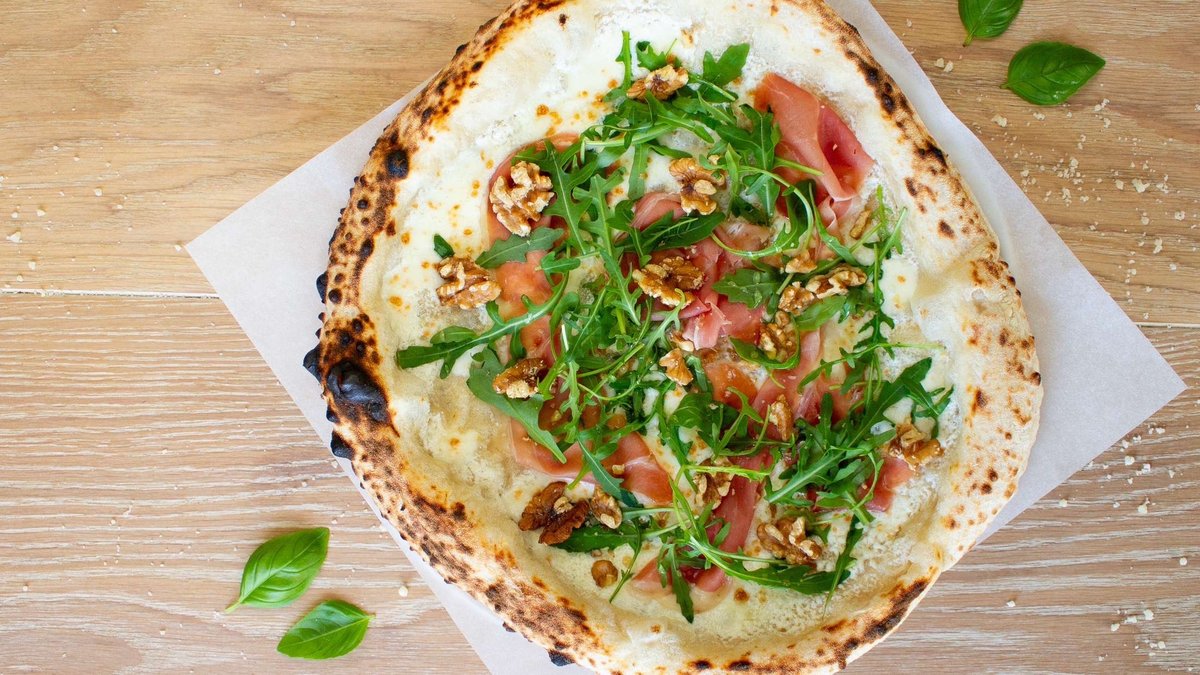 Våre napolitanske pizzaer er laget på surdeig, stekt i høy temperatur og toppet med nøye utvalgte ingredienser. Ca 30cm.