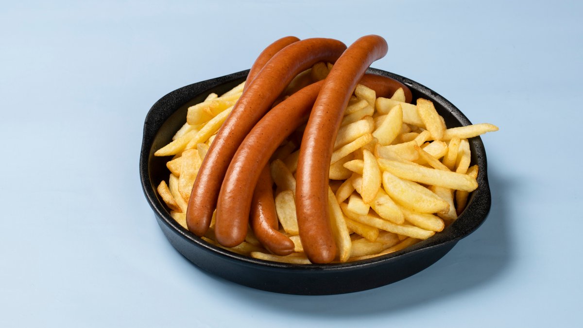 9990. Pølser med pommes frites