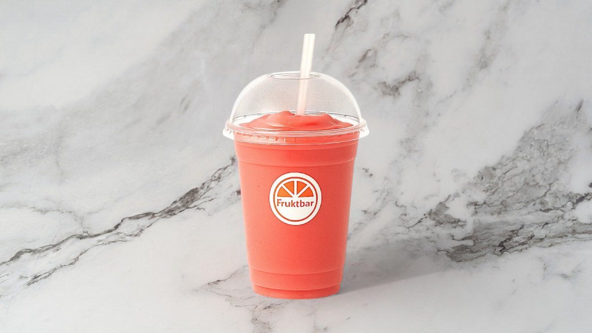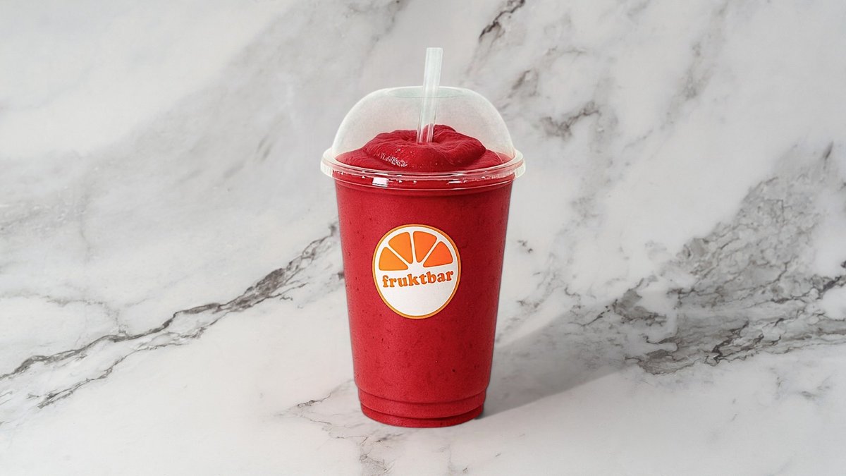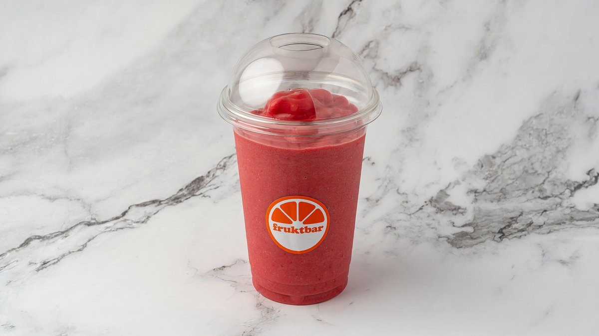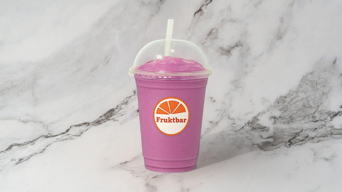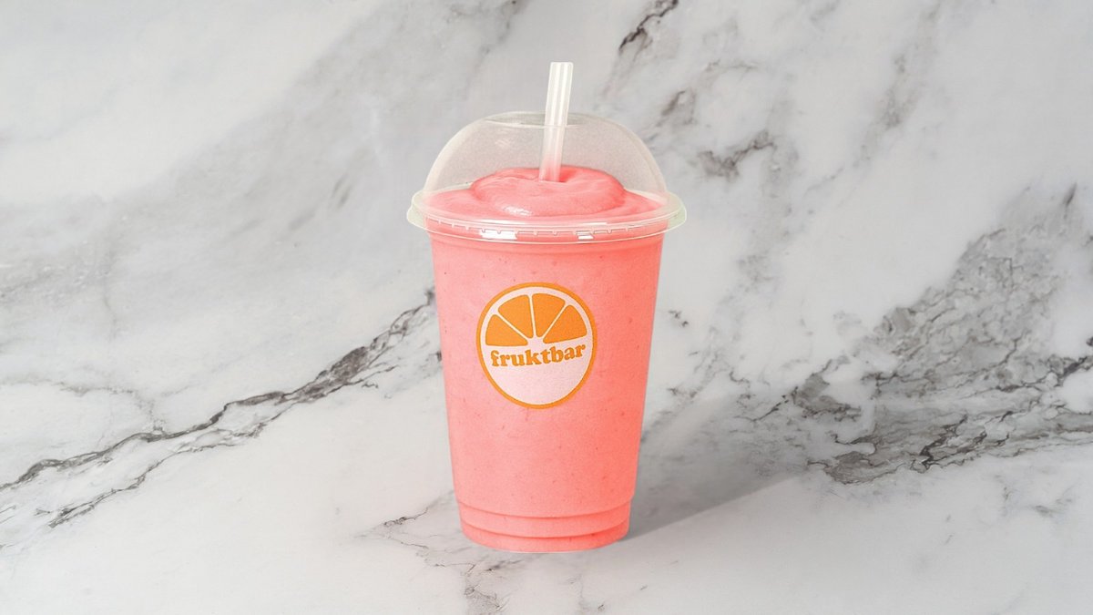 Smoothie med eplejuice, jordbær, mango, banan, ananas og vaniljeyoghurt. Smoothiene er laget med eplejuice som standard, og det er mulig å velge en melkevariant i tillegg.