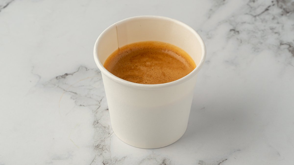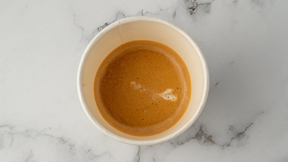 Espresso, melk og sirup.