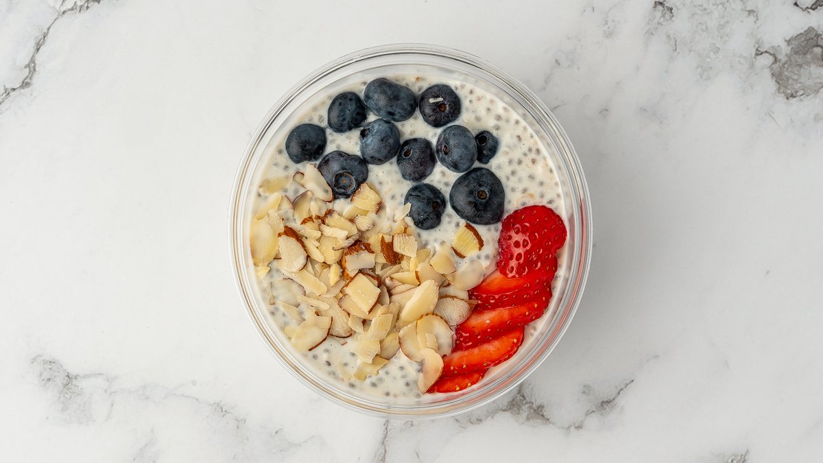 Proteinrik kjøleskaps grøt med cottage cheese, frukt og bær.