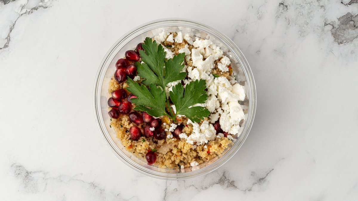 Tabbouleh med granateple og feta.