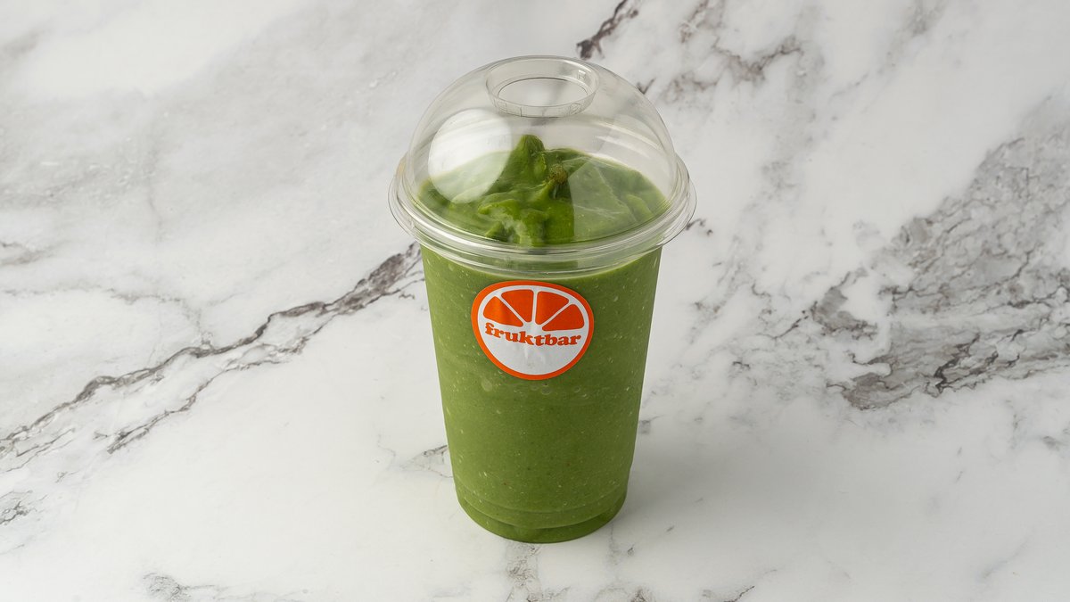 Eplejus, lime, avocado, spinat, ananas, chili, ingefær. Smoothiene er laget med eplejuice som standard, og det er mulig å velge en melkevariant i tillegg.