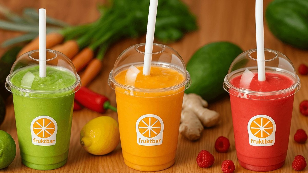 Smoothiene er laget med eplejuice som standard, og det er mulig å velge en melkevariant i tillegg.
