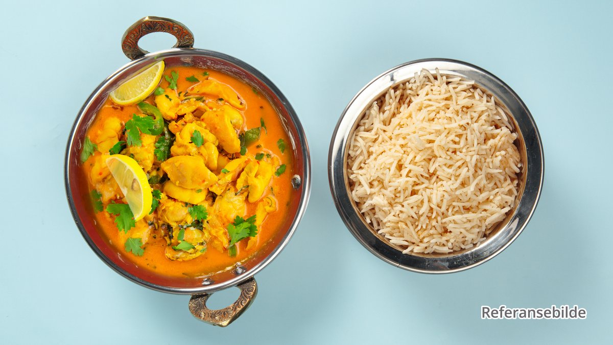 Alle retter serveres med ris og currysaus.